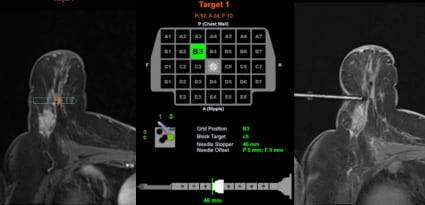 MRI-guided breast biopsy helps clinicians to diagnose and treat breast cancer with greater accuracy and efficiency — even the most challenging cases. Among other things, the technique is crucial for finding and targeting cancerous tissues that are not visible on mammography or ultrasound.
